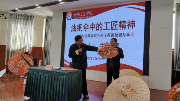 大国工匠进校园分享会更是点燃了学子们的技能热情。学院特别邀请非遗油纸伞制作技艺国家级传承人毕六福到校,为大家详细讲解非遗油纸伞的制作工艺和文化底蕴,让学生深刻体会“技能改变人生”的力量,进一步增强对工匠文化的认同感与技艺传承的责任感。“