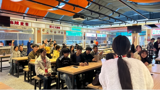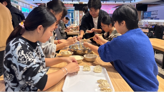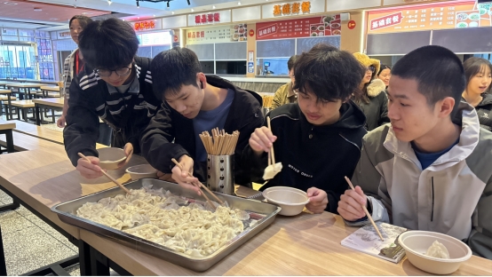 饺子煮好分装后,“暖冬分享”互动环节随即开启。工作人员围绕“立冬为何要吃饺子”“泸州本地立冬有哪些传统习俗”等立冬小知识开展有奖竞答,同学们积极举手抢答,答对者收获学习用品的奖励。问答结束后,大家捧着餐盘,品尝自己动手制作的成果,聊聊校园生活、说说节气故事,食堂内满是欢声笑语。