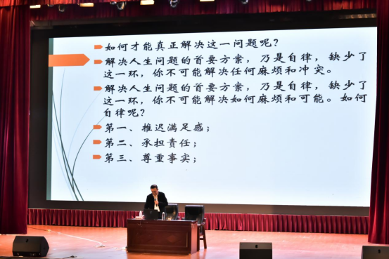 在“心智成熟的路径”部分,蒋教授深入解读了《少有人走的路》中提出的“自律”四大原则:推迟满足感、承担责任、尊重事实、保持平衡。他鼓励同学们在面对人生的苦难与选择时,勇于自律、珍惜友谊、善待他人,在实践中不断实现自我完善与他人共同成长。