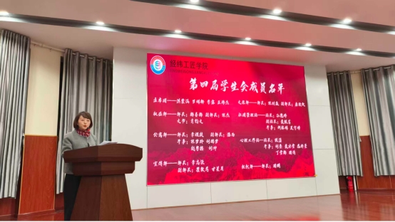 张翠丽宣读第四届学生会成员名单。当念到每一位新成员的名字时,现场均报以热烈掌声,这既是对新成员的欢迎,也是对他们未来工作的期待。
