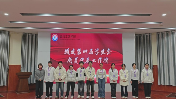 交接仪式后,大会进入聘书颁发与工作牌授予环节。出席领导为第三届学生会全体成员逐一颁发聘书,感谢他们过去一年的辛勤付出;同时为第四届学生会成员授予工作牌,每一张工作牌都凝聚着学院的信任与同学的期待,激励新成员以更饱满的热情投入服务工作。拿到聘书与工作牌的同学们神情庄重,纷纷表示将不负期望、履职尽责。