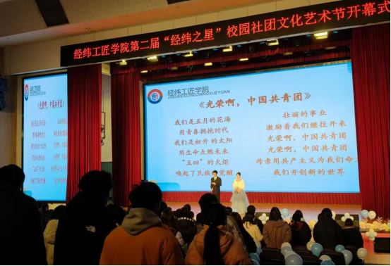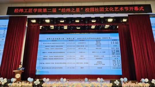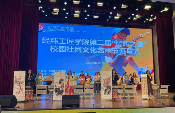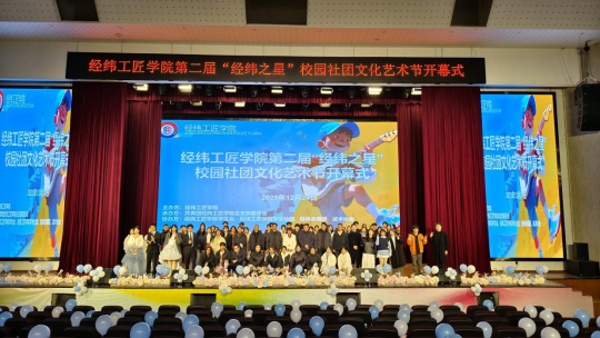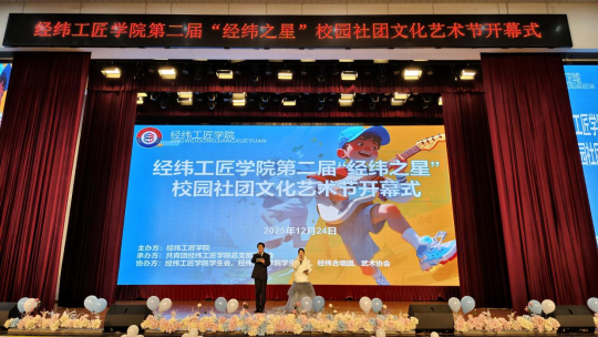 2025年12月24日下午,经纬工匠学院第二届“经纬之星”校园社团文化艺术节开幕式在玉阶素质教育中心隆重举行。学院党总支书记田勇、院长李亚平、党总支副书记张翠丽、副院长程群凌等出席开幕式。各社团指导教师与全体社团学生齐聚一堂,共同见证了这场青春洋溢、精彩纷呈的文化艺术盛会。